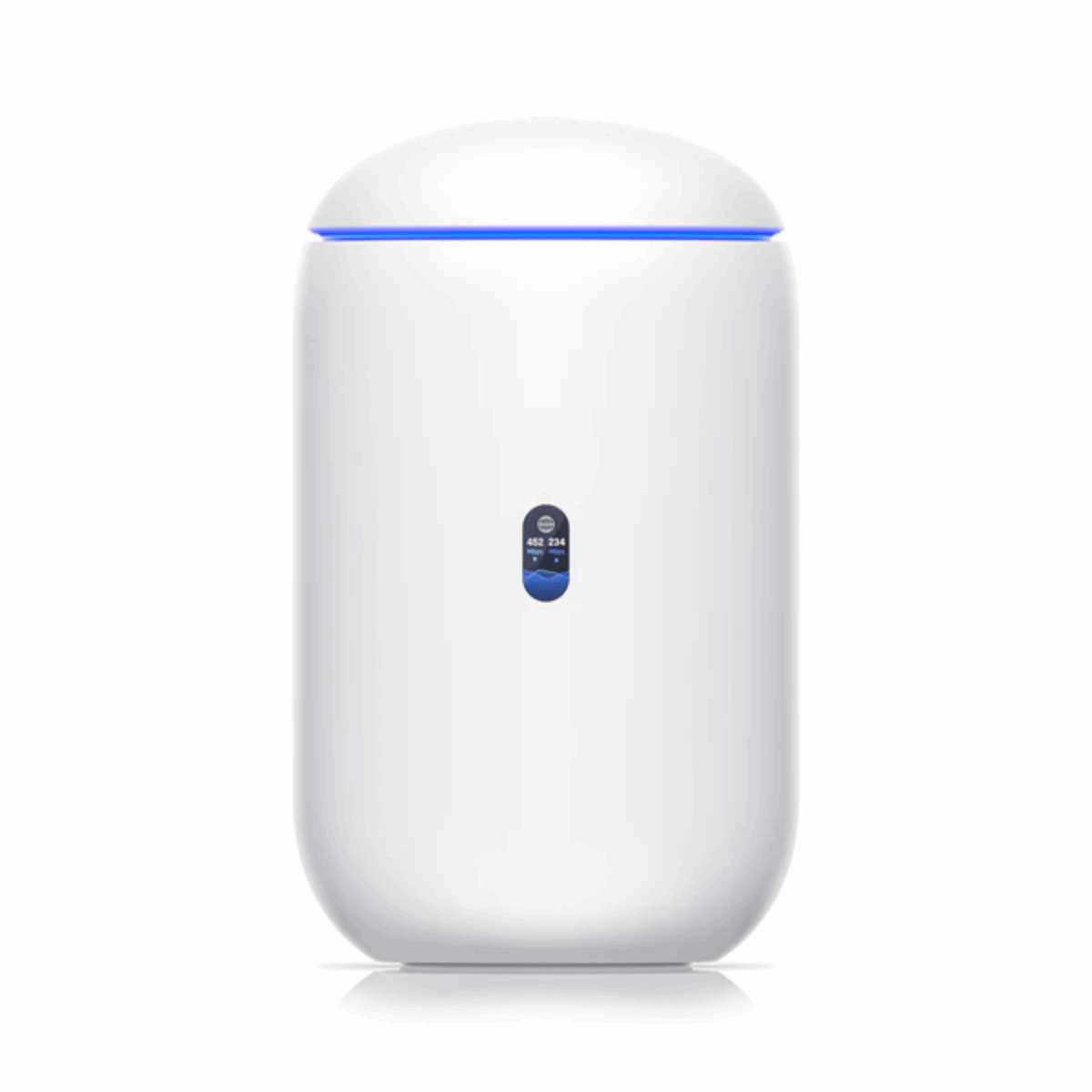 Unifi Dream Router er en komplett alt-i-ett-ruter som fungerer som en hub for ditt UniFi-nettverk med aksesspunkter og nettverkskameraer. Wifi 6 med opptil 3 Gb/s fordelt på 2,4- og 5-GHz-båndet med avansert 4x4 MU-MIMO- og OFDMA-teknologi, som gir et sterkt signal til enhetene dine. Utstyrt med 4-porters switch der 2 av portene har POE-støtte for å drive aksesspunkter og nettverkskameraer bare via nettverkskabelen. En fargeskjerm på fremsiden av enheten viser relevant informasjon, som hastigheter i nettverket, oppdateringer og statusmeldinger. Enkel installasjon via Unifi-webklient eller mobilapp (iOS/Android).