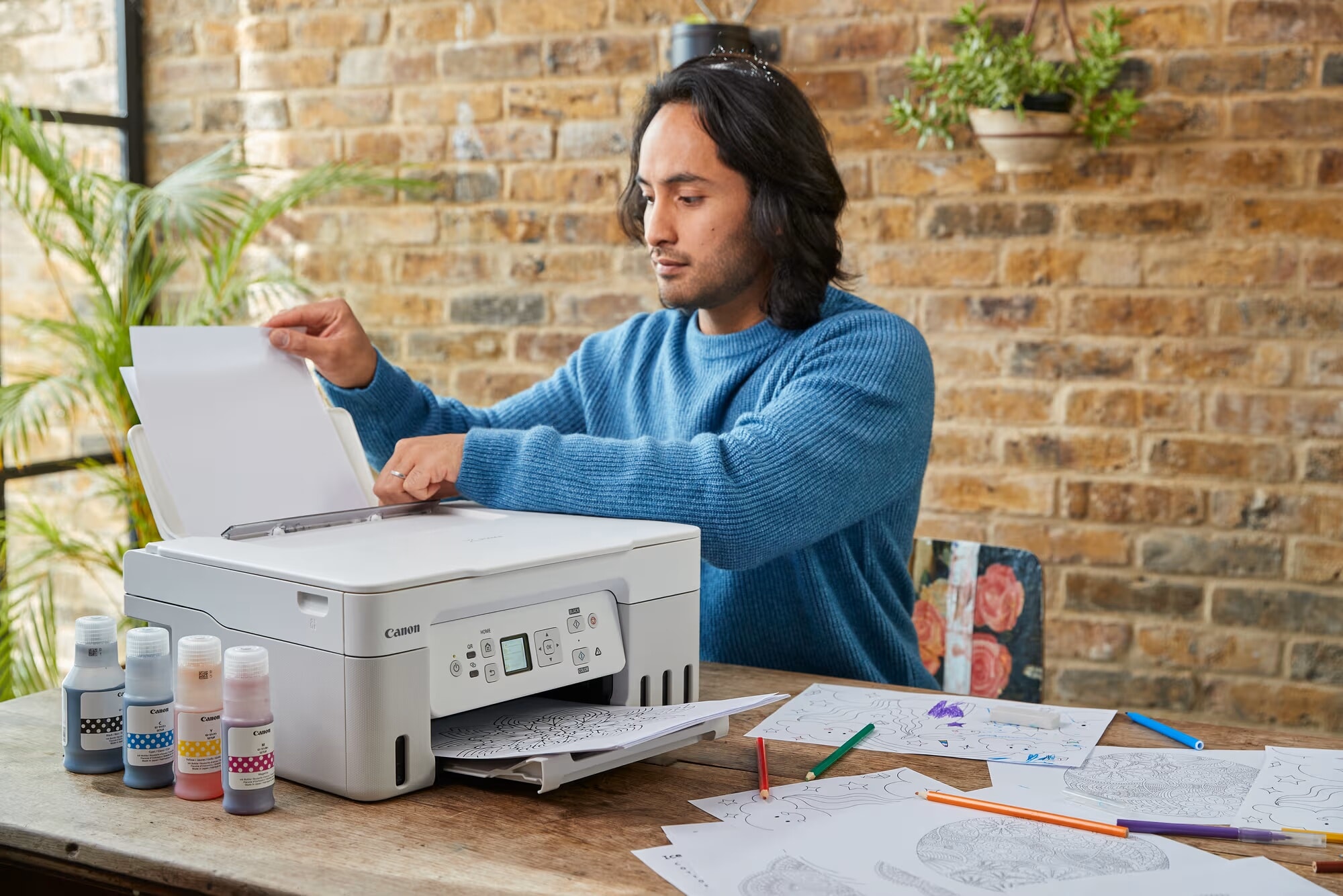 Hvis du har behov for en rask og kostnadseffektiv printer som også kan skanne og kopiere, vil Canon PIXMA G3571 inkjet printer dekke alle dine behov. Med tre ulike moduser kan du velge akkurat den utskriftsstilen du ønsker. Om du vil få flest mulig utskrifter, kan du bruke Economy-modus som gir opptil 7600 utskriftssider i sort-hvitt og 8100 i farger, takket vare blekkpatronene med høy kapasitet. Printeren kan tilkobles via USB eller trådløst ved hjelp av Wi-Fi fra din mobilenhet. Canon PRINT-appen er kompatibel med både Apple- og Android-enheter.