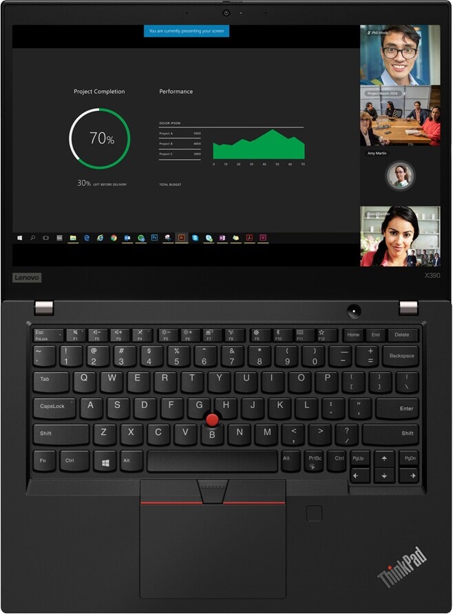 Lenovo ThinkPad X390 13,3" bærbar PC lar deg sette opp ditt eget lille hjemmekontor på kaféen, på flyet, eller hvor enn du har behov for å jobbe. PC-en tilbyr heldags batteritid, vekt og tykkelse i særklasse og eksepsjonell Intel Core i7-ytelse.