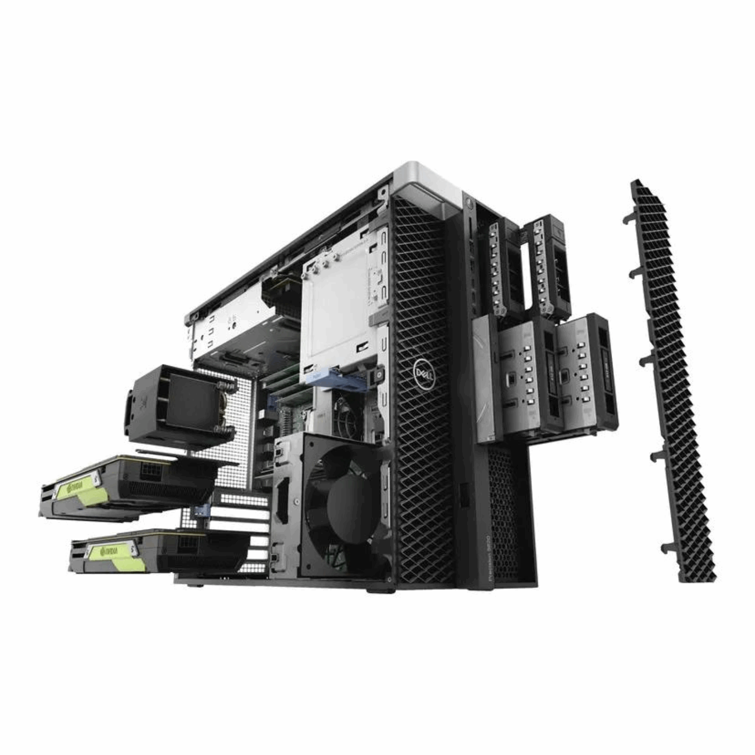 Precision 5820 Tower er en kraftig arbeidsstasjon som er perfekt for profesjonelle som trenger en maskin som kan håndtere ressurskrevende oppgaver som 3D-grafikk, video eller bilde redigering og annen databehandling.