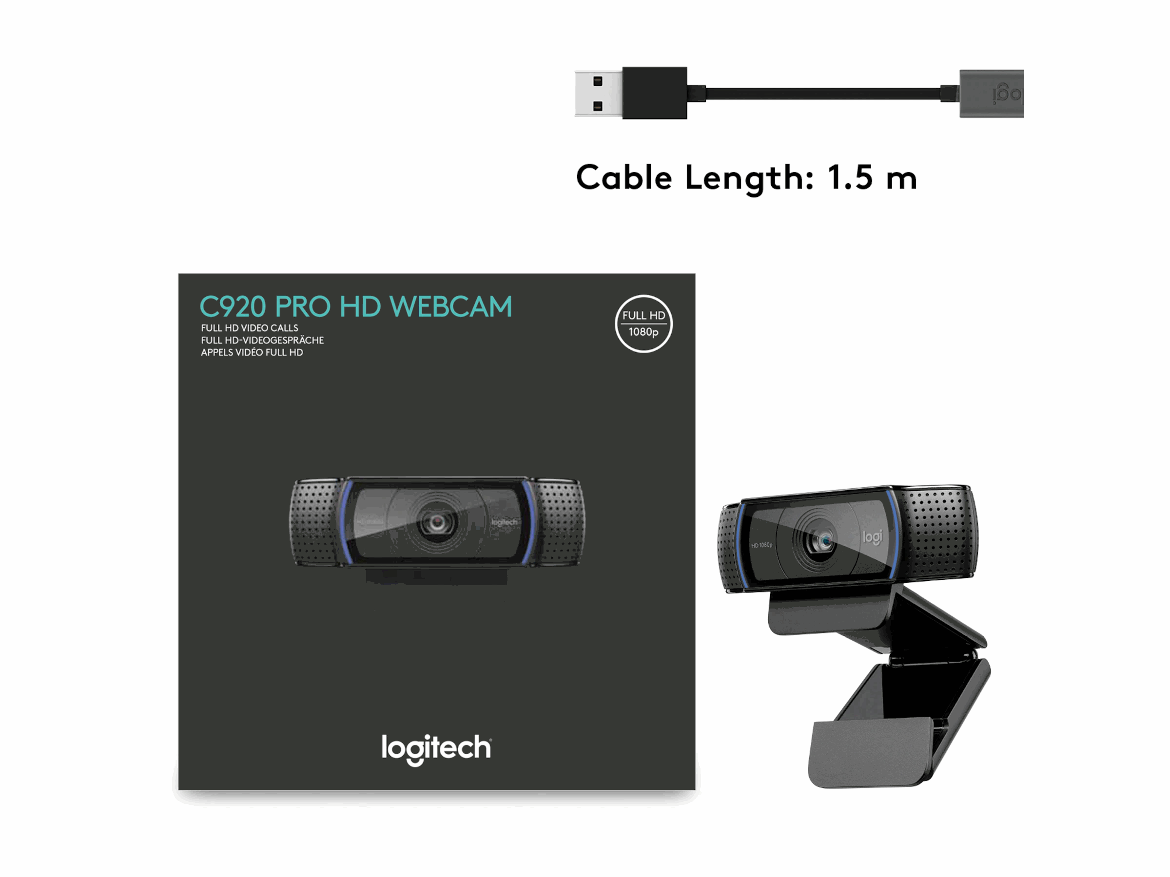 Egenskaper 720p HD-videoanrop, Carl Zeiss-optikk, Logitech Fluid Crystal Technology, 1080p Full HD-video Skype-oppringing, 1080p full HD-filmopptak, Skype-kompatibel